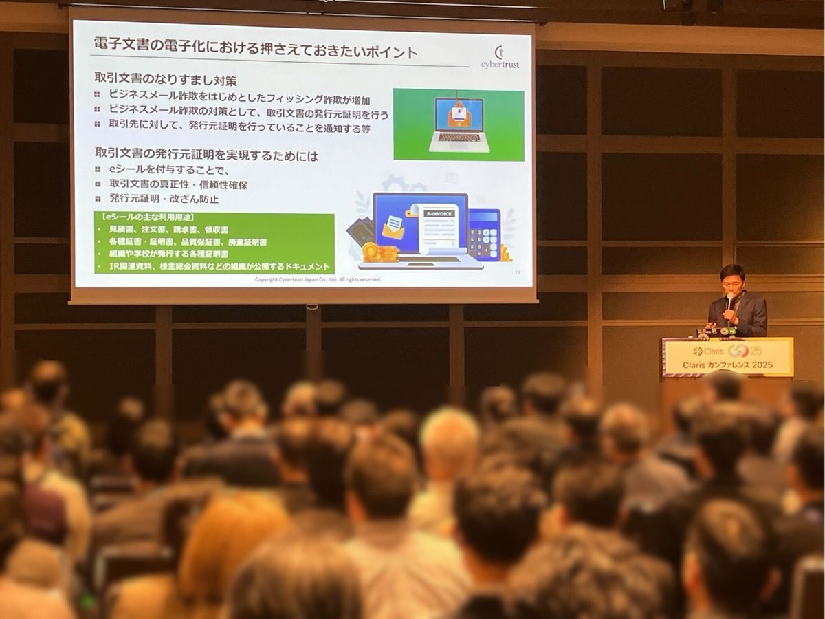 クライアントに製造業の方もいらっしゃるので、ミルシートへのeシール活用や、後半のセキュリティインシデント事例はアタックされた企業から個人情報を取られた可能性がありますとメールを受け取った側なので、セキュリティ対策は待ったなしだなぁと痛感しました。 #Clarisカンファレンス2025 x.com/cybertrust_jp/…